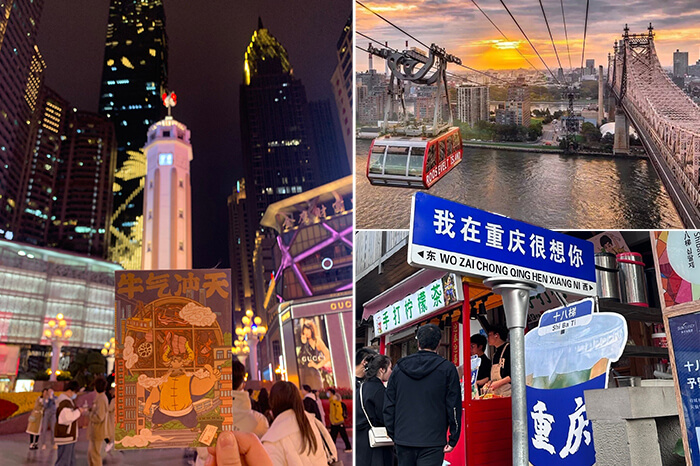 我们是从出发,飞机抵达重庆江北国际机场,一出站就看到提前预约的已经在等我了。抵达重庆自然是要从解放碑开始解锁各色小吃,吃饱喝足后,可以在晚上8点后打卡洪崖洞,随后前往千厮门大桥拍摄洪崖洞全景。